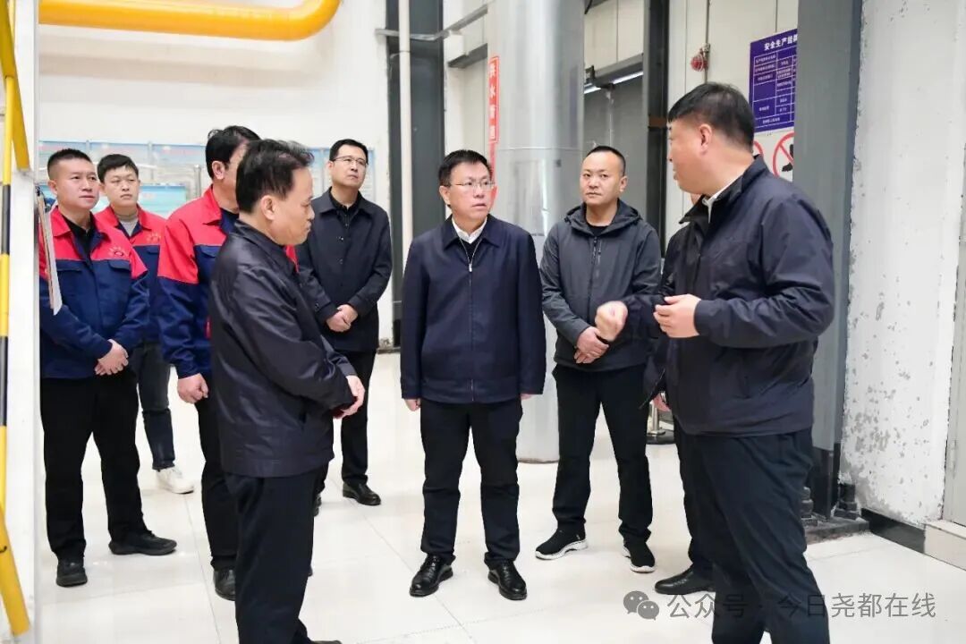 在临汾海姿供热有限公司赵下热源厂,崔绍民深入车间、调度中心,详细了解热源保障、燃料储备、设备运维管理等情况。他强调,热源厂是供暖的核心枢纽,企业要科学调度、精心运维,确保热源充足、运行平稳;要严守环保底线,严格落实各项环保措施,实现清洁供暖、绿色供暖;要加强安全生产管理,强化员工安全培训,规范操作流程,坚决防范各类安全事故发生,为全区供暖工作提供坚实可靠的热源保障。